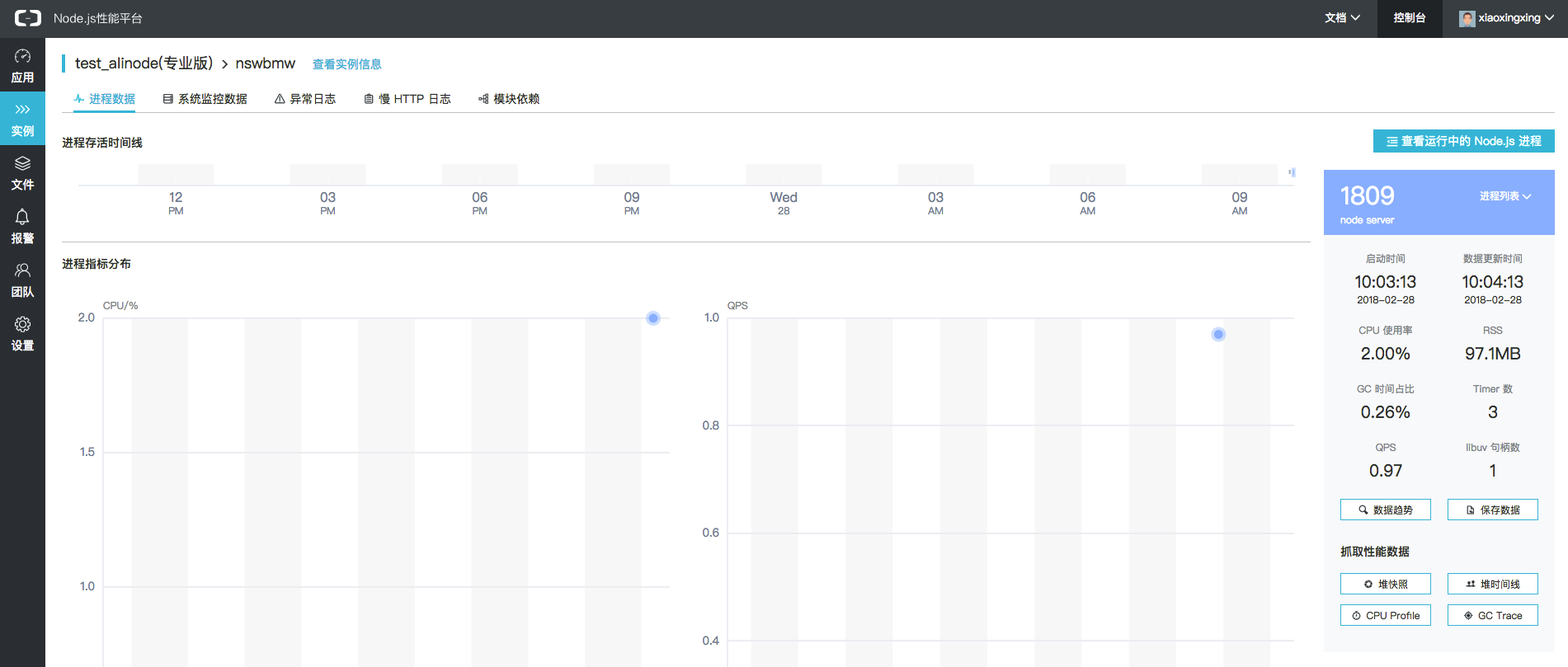 过一会儿就可以在 alinode 控制台看到数据了,如下所示: